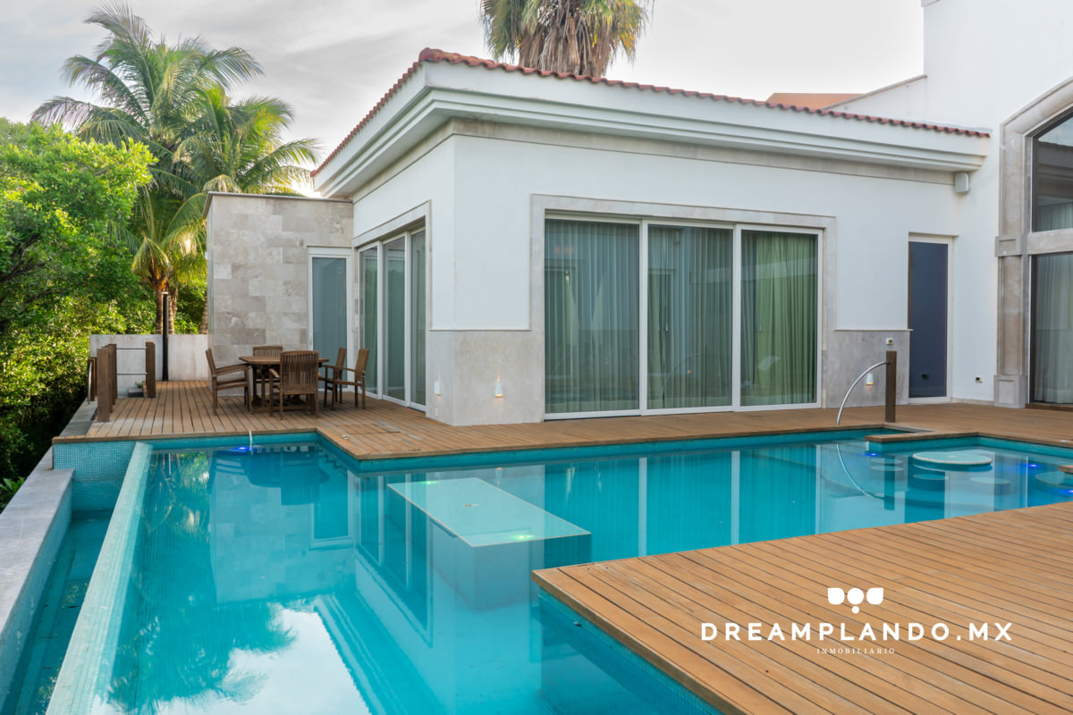 Ubicada en la exclusiva Isla 5 del Fraccionamiento El Dorado – Residencial & Marina en Boca del Río, Veracruz, esta residencia de lujo se desplanta en un terreno irregular de 1,100m², aprovechando al máximo su entorno privilegiado.