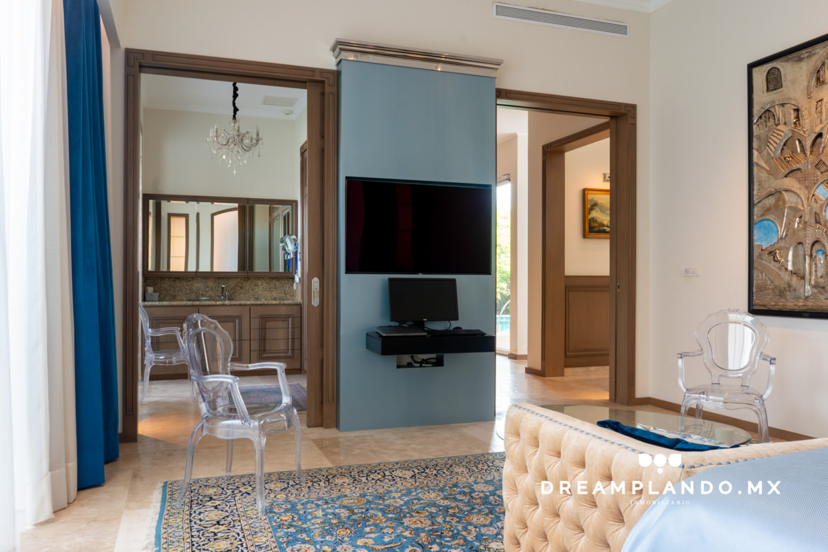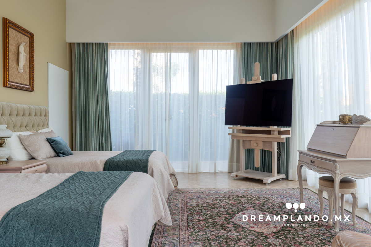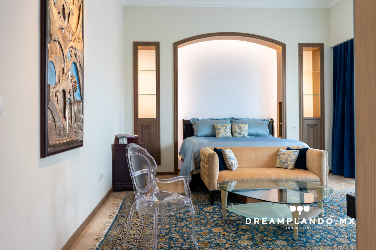 Las áreas privadas de la residencia, incluyendo las recámaras de servicio y los baños, son un santuario de tranquilidad y lujo. La tecnología de punta, como los sistemas de aire acondicionado integral y audio ambiental, junto con los cristales acústicos y térmicos de las ventanas Kömmerling, garantizan un ambiente confortable en todo momento.