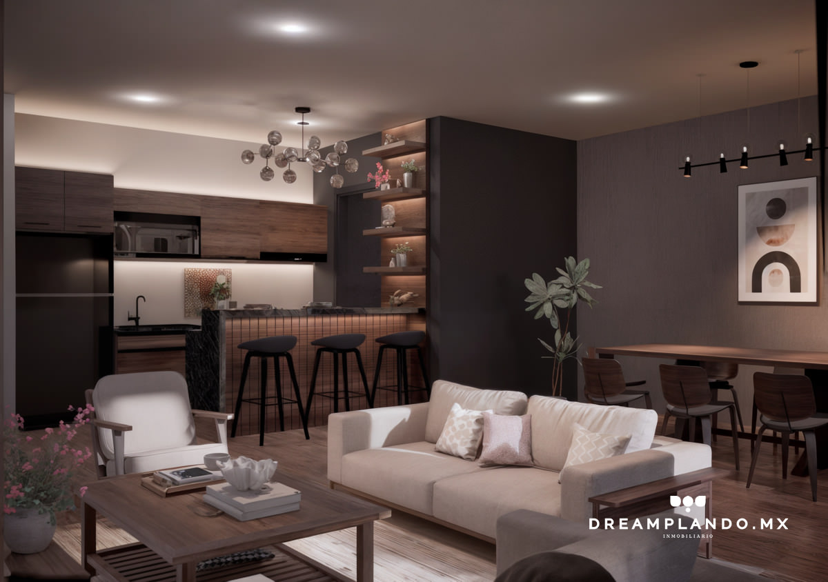 Explora los espacios reales de Torre Camino Real: interiores, cocina, recámaras, roof garden y más.